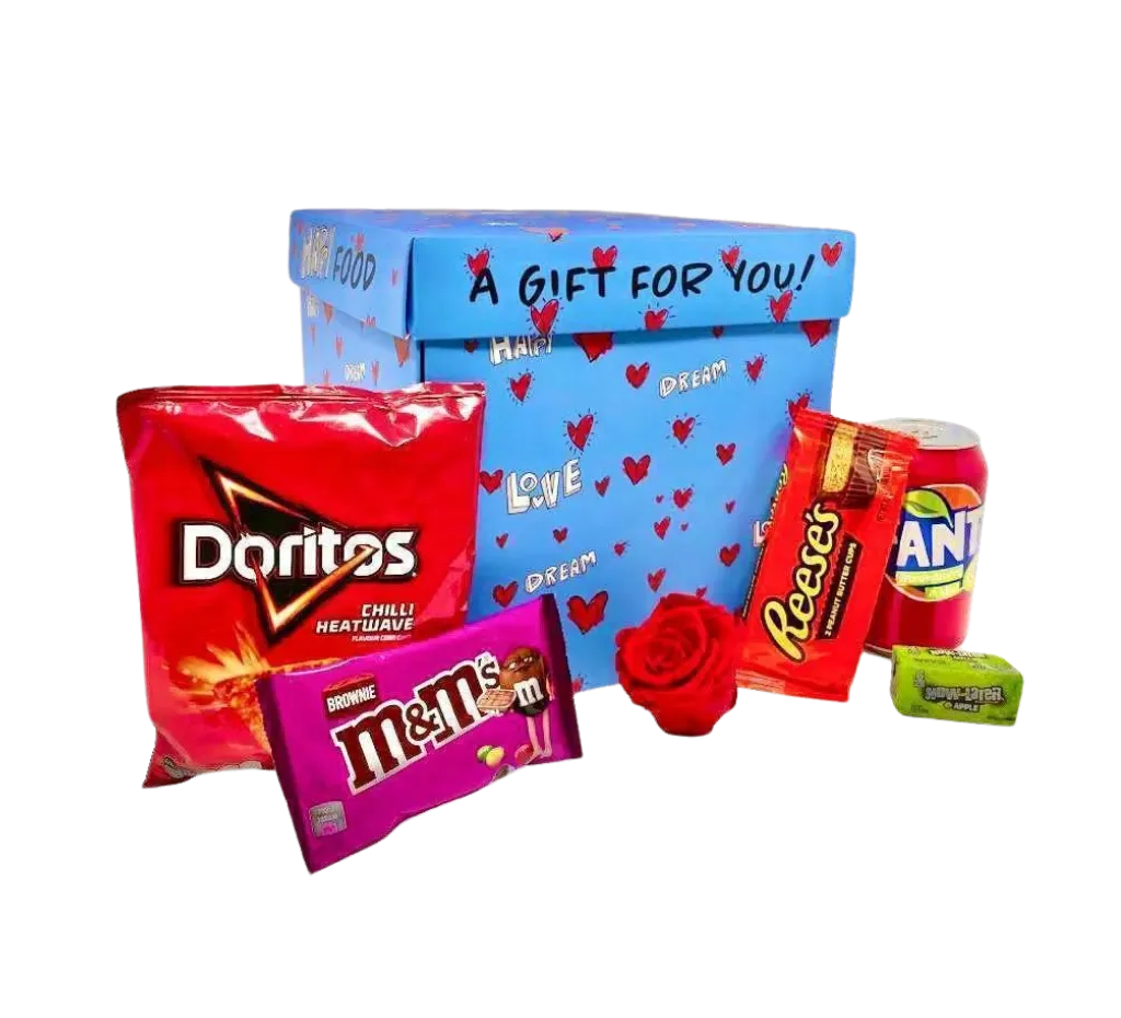 Festa della Donna 2025! Box Grande piena di cibo americano e internazionale con 1 Rosa eterna sempre inclusa!